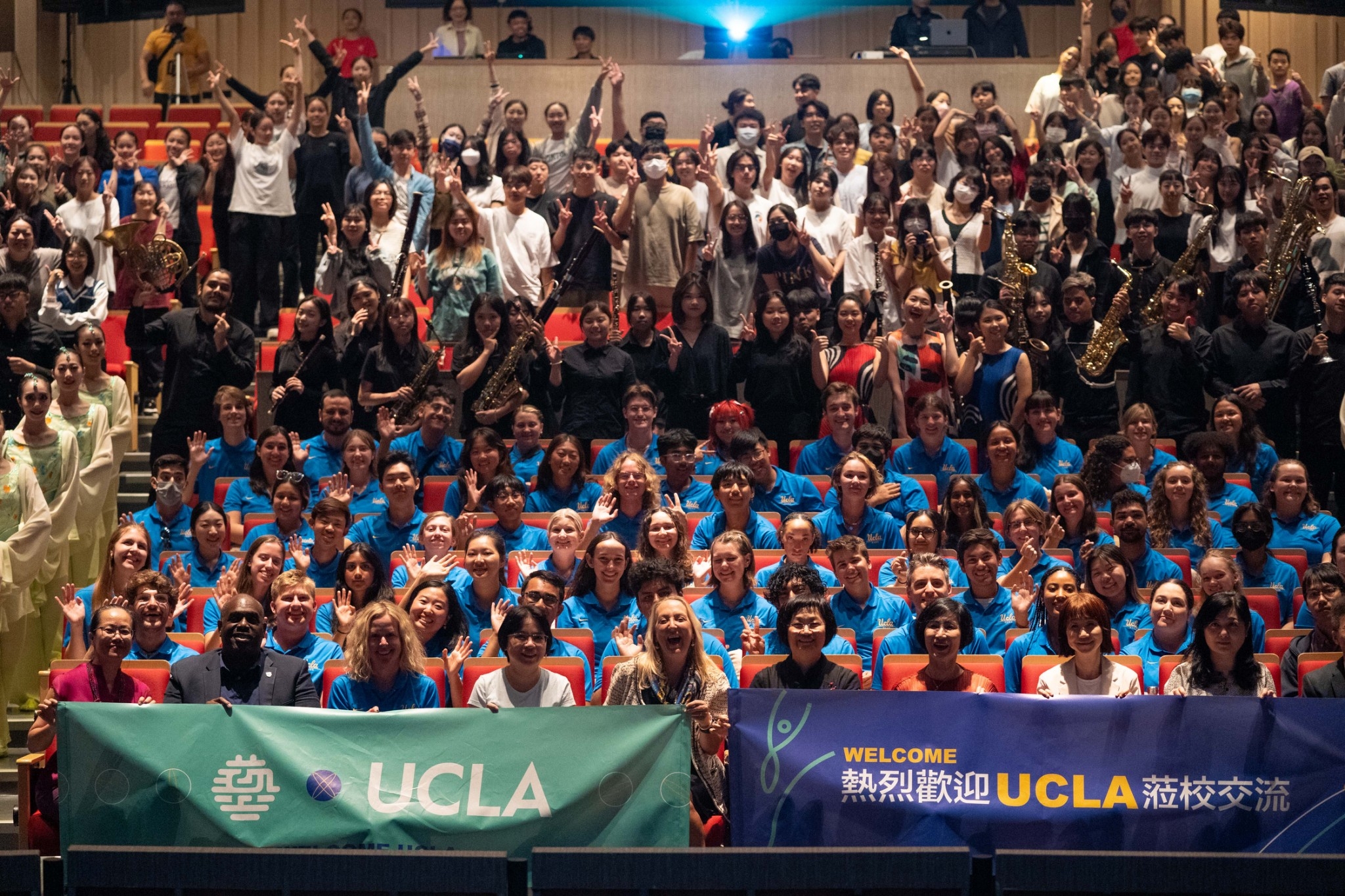 【實習記者李侑霜/新北市報導】美國加州大學洛杉磯分校 (University of California, LA, 簡稱 UCLA )棕熊行進樂隊「純金之聲」受中華文化總會邀請來臺參與國慶演出,於10月11日上午蒞臨國立臺灣藝術大學進行交流,超過350名師生於OUR MUSEUM廣場齊聚同樂,現場活潑的樂隊表演,充滿青春活力的氣氛,獲得如雷的掌聲。