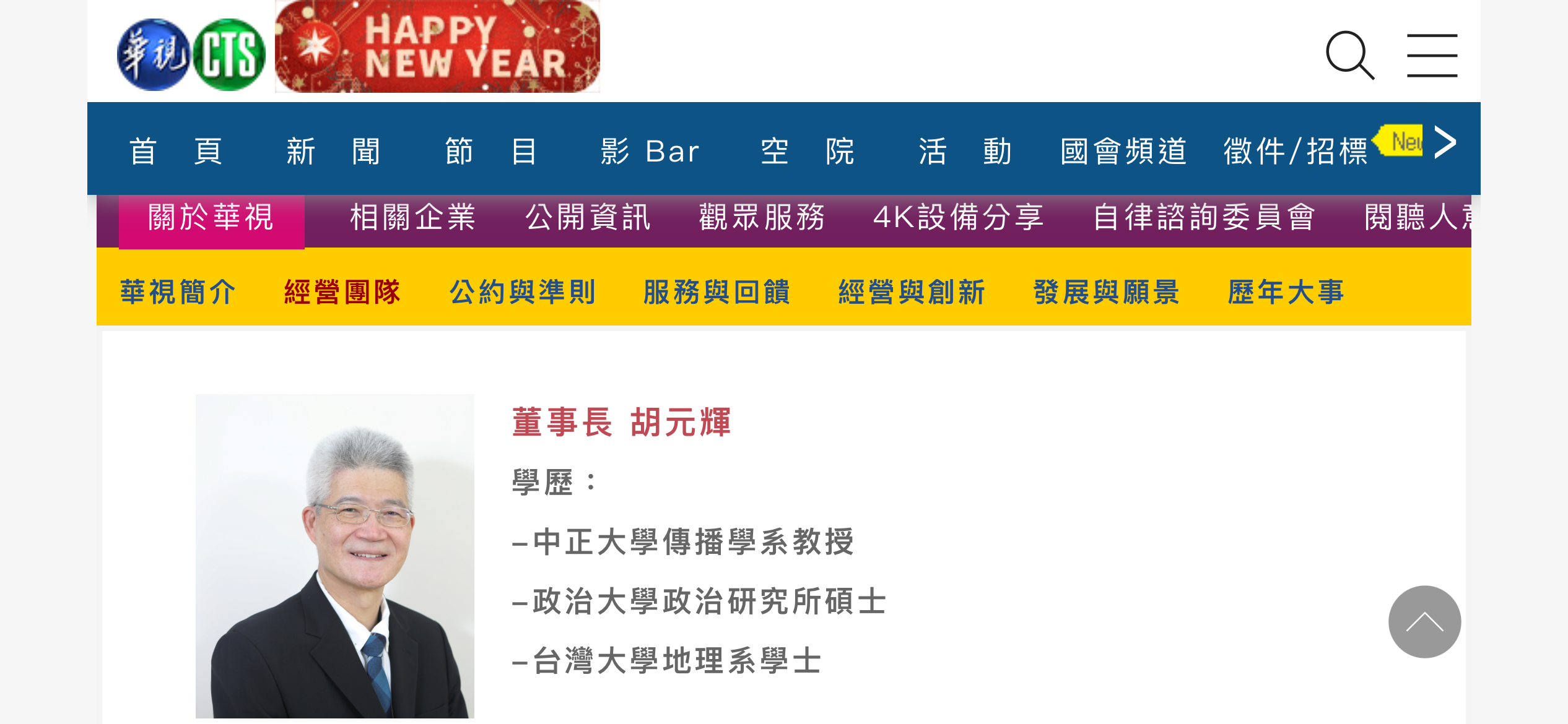 據了解,公廣集團董事會開會曾經討論這個議題,身兼公視與華視董事長的胡元輝(見照片)雖然請大家討論,但是他也建議選後再公開甄選,以免政治化。在其他董事沒有強烈意見的情況之下,這個重要的人事案居然沒有太多討論就草草結束了。
