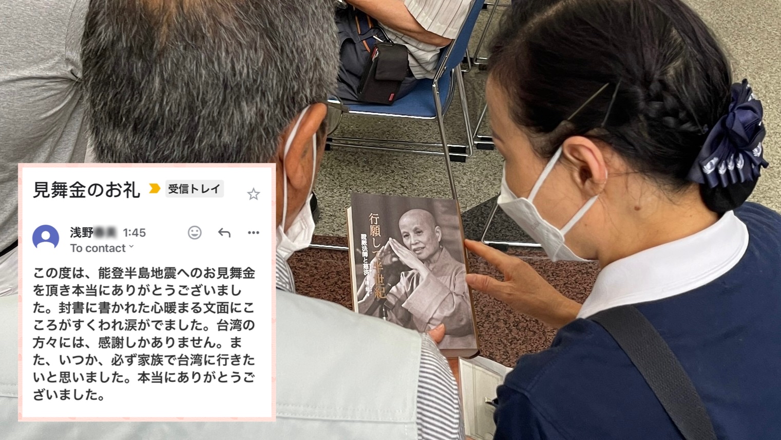 日本災民說,不但收到慈濟的慰問金,信裡面證嚴法師溫暖的慰問,更是讓人因為心裡得到安慰而感動落淚。