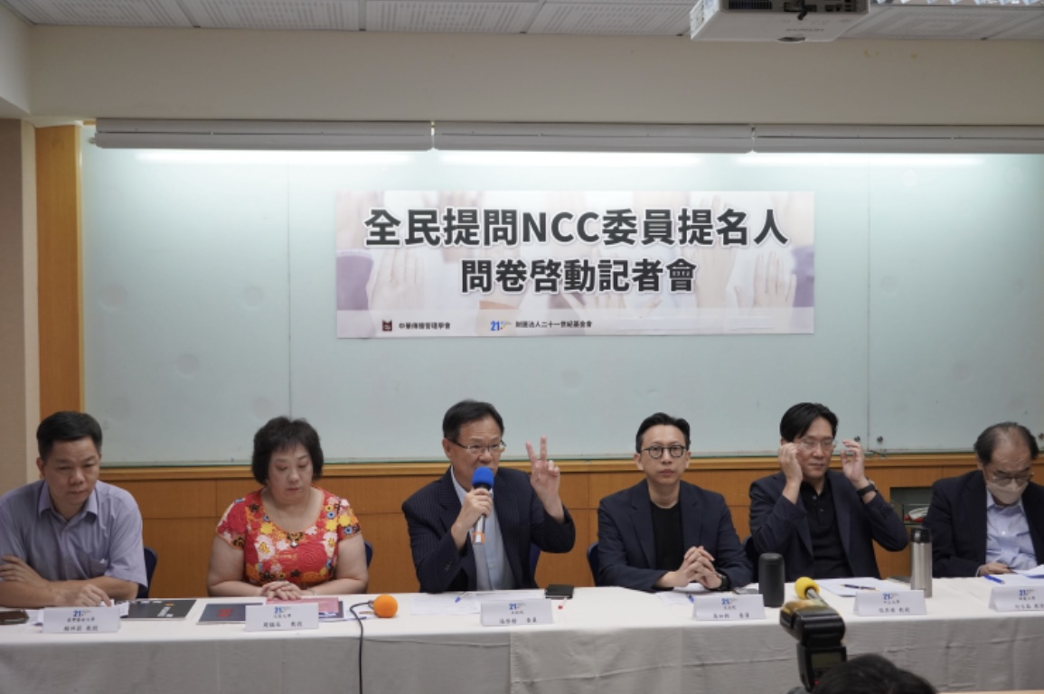 【聚傳媒特約記者陳冠宇報導】因為行政院立場與立法院的僵持不下,NCC委員人事案遲未進行審查。財團法人21世紀基金會、中華傳播管理學會8月7日召開記者會,表示以前因為審查不夠實質深入,沒有辦法推出最好的NCC委員,透過問卷才能真正瞭解新任委員被提名人對議題及業務的態度,呼籲被提名人都能詳實回答,讓人事案能夠速審、嚴審與實質審,選出真正適任的NCC委員。