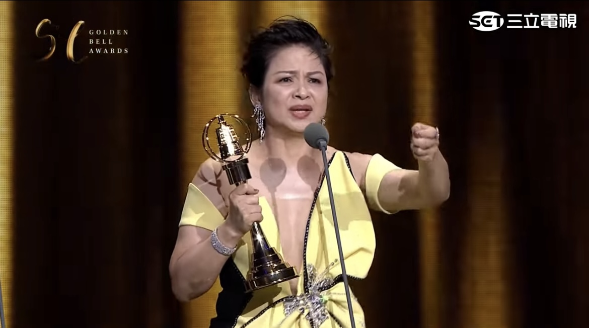 照片為楊貴媚獲得戲劇節目女主角獎,三立直播截圖
