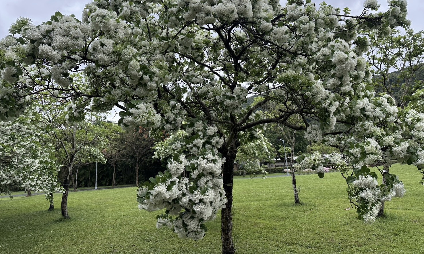 公園處長藍舒凢表示,流蘇花花瓣撕裂細長,猶如古時仕女服飾之流蘇,因而得名。雌雄異株或為兩性花,羽毛狀的圓錐花序,頂生,多數簇生,具香氣。在臺北、桃園、新竹山區均有分佈,需要日照充足、排水良好的環境。由於與桂花是近親,流蘇花也具有類似桂花的清香,嫩葉可入藥或替代茶葉,果實成熟由綠轉為紫黑色能供鳥兒食用,木質堅硬還可製成算盤的珠子等器物。而被稱為「四月雪」是因為它盛開時潔白如雪的花瓣隨風飄落,宛如雪花般浪漫,對於喜歡拍照打卡的朋友來說,這絕對是不可錯過的機會!