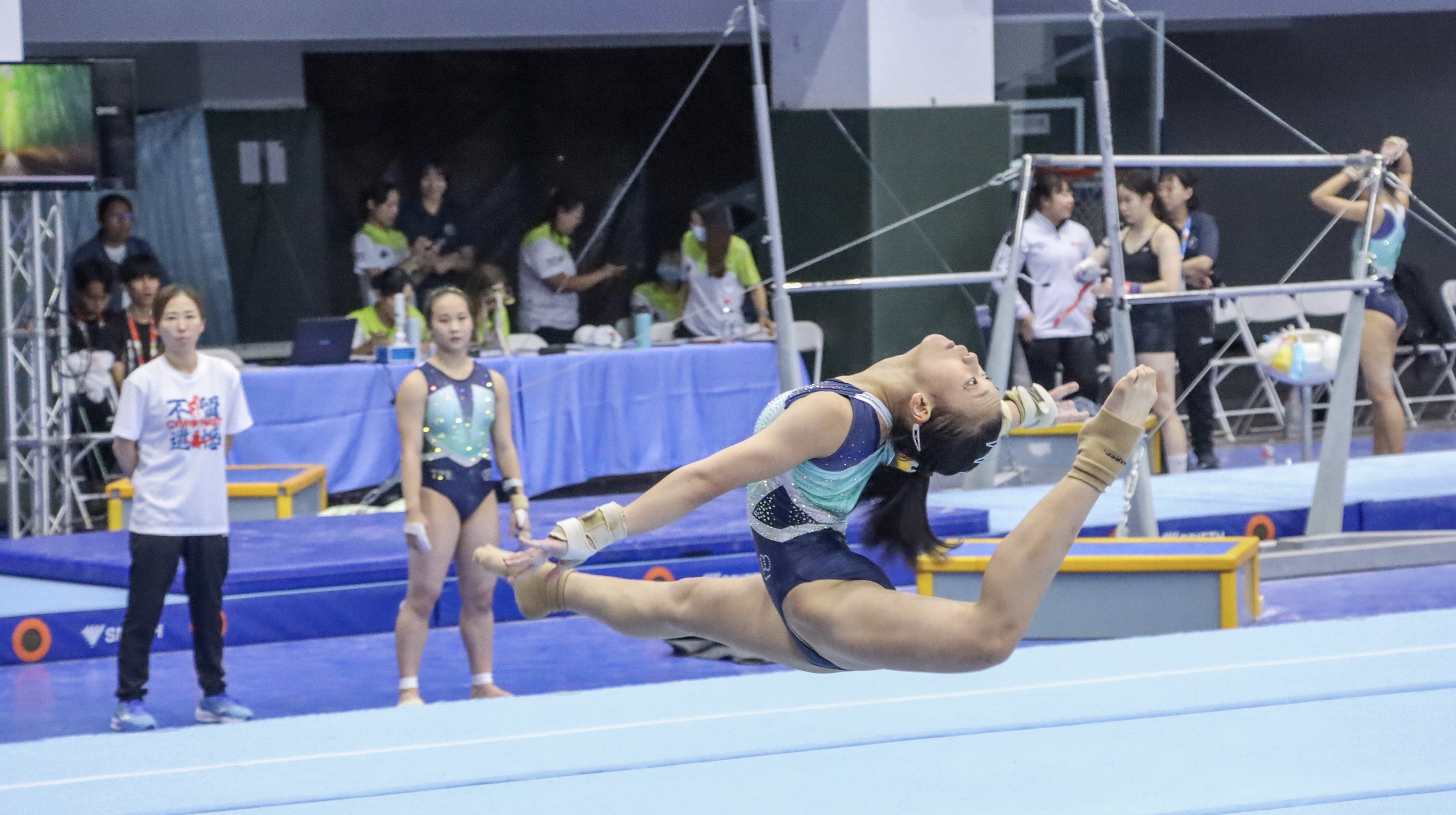 本屆全中運於台南市舉行,競技體操賽事節奏快速、動作細膩,充滿技術張力以及力與美的視覺震撼。新聞系學生面對高門檻的體育賽事轉播挑戰,賽前積極備戰,進行多次模擬演練與轉播技術訓練。從撰寫轉播腳本、熟悉各項器械的動作名稱與評分規則,也在現場迅速磨合團隊節奏,培養出影音剪輯、聲音同步與臨場轉播的實戰經驗。