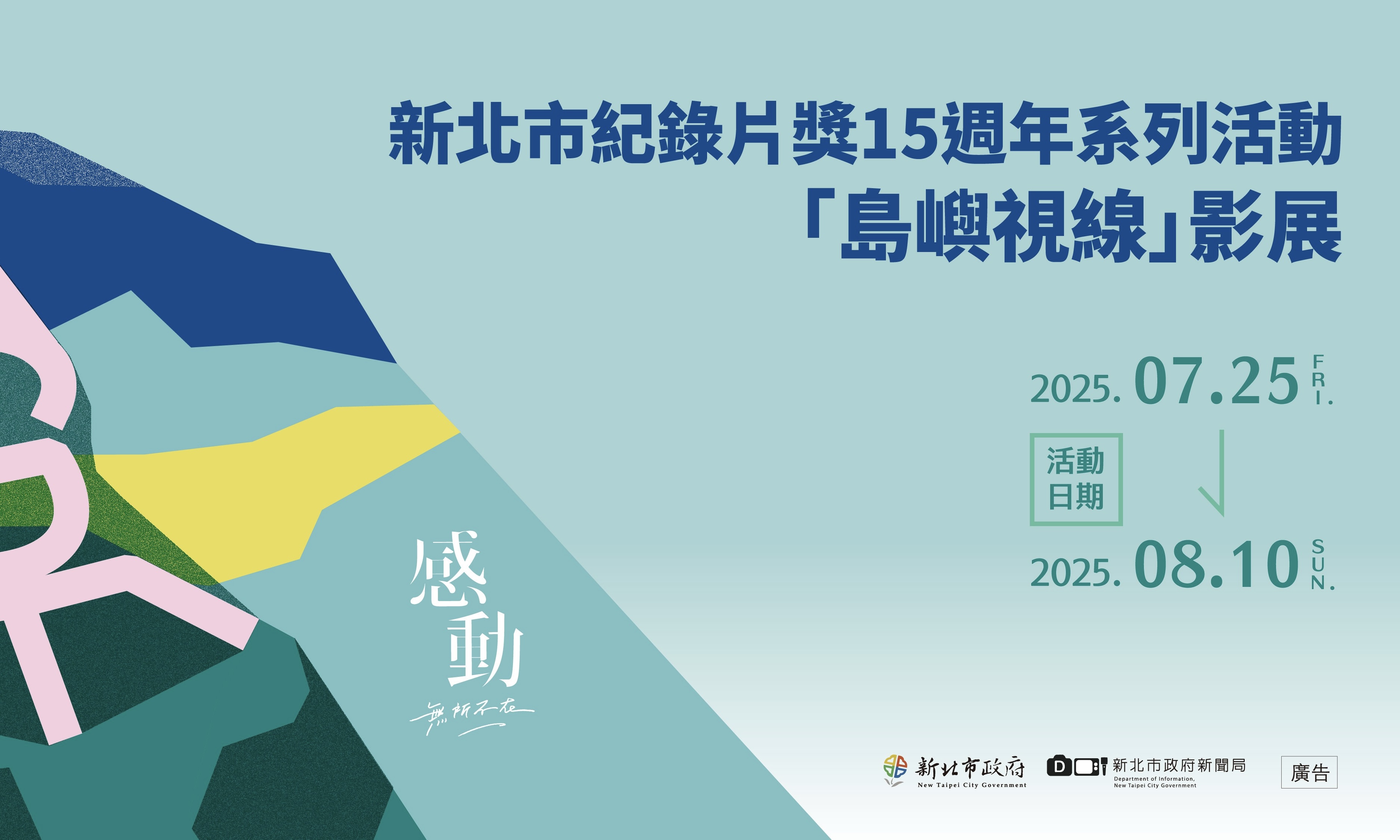 【聚傳媒特約記者陳欣如報導】新北市紀錄片獎15週年系列活動「島嶼視線」影展將於 7月25日登場,規劃四大主題精選24部新北市紀錄片獎歷屆優選作品及5部國內外紀實影片,7月4日起於新北市紀錄片獎官方網站開放線上免費索票。