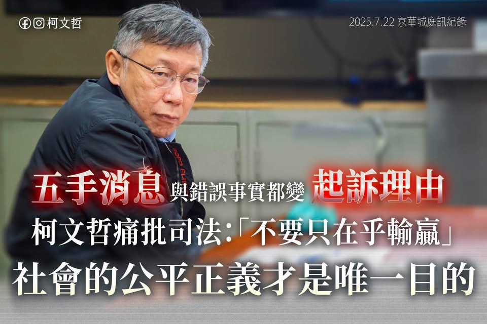 民眾黨創黨大老說,許多民眾都覺得柯文哲受到不公正的迫害,還沒有被定罪就形同已經坐牢,沒有被褫奪公權卻無法出來反罷免投票;羈押過程中還發生前台北市副市長彭振聲夫人自殺的遺憾,不只讓彭振聲痛哭怒斥國家迫害,更讓全民同感悲哀。大家應該都會同意,如果有罪,當然應該接受司法審判,但現在的羈押已經很明顯是有政治考量,今天是柯文哲,改天可能是每一位台灣人,民眾黨應該把搶救柯文哲變成主要目標,國民黨也應該一起合作,讓搶救柯文哲變成全民運動。