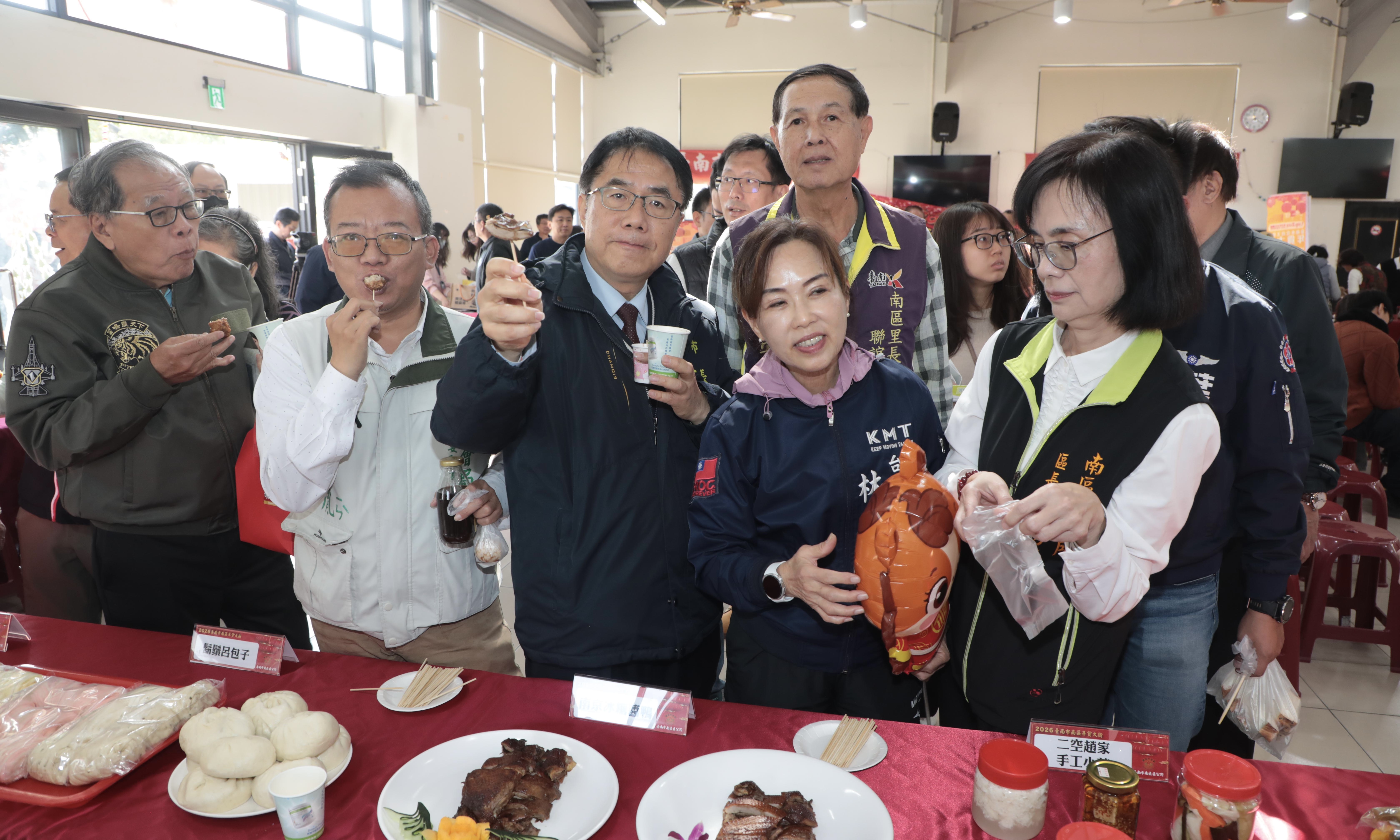【聚傳媒特約記者陳欣如報導】台南市南區年節活動「眷村年貨大街」即將熱鬧登場,首場將於1月29日至2月2日在水交社眷村文化園區舉行,接著於2月6日至10日移師台南市棒球場旁接力辦理。台南市長黃偉哲22日出席活動記者會,與南區區長蕭琇華及在地里長共同啟動活動序幕,正式宣告南區眷村年貨大街開跑,邀請市民朋友走進眷村,感受濃濃年節氛圍。