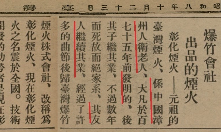 照片為作者提供 【聚論壇翁佳音專欄】台灣何時開始放煙火?不是老番故意牽拖,文獻已明示荷蘭時代「順治十八(1661)年…臺灣通事何斌侵用揆一王庫銀至數十萬…於元夕大張花燈、『煙火』、竹馬戲、綵笙歌妓,窮極奇巧,請王與酋長卜夜歡飲…」;明鄭時代「…正月…望日大放元宵…即傳街市居民構結燈棚,懸掛古董、竹馬故事,『煙火』笙歌,以供遊玩」。 以上資訊出自江日昇《台灣外記》,老番知道正經八百的學者不太願意採用,以為這書是外記小說類,不足憑信。但從作者自序「閩人說閩事」,加上老番多番比對,此書的價值確實被輕視了,它所述的貼身「事實」,反而優於正史。荷蘭1680時代放炮竹、煙火之事,可從巴達維亞城在1640與1680年代的《法令佈告彙編Plakaatboek》」禁止巴城附近漢人燃放鞭炮與煙火之事,台灣當局通常緊接著張貼遵守。總之,煙火升空、綻放的民間景象絕對存在,但正史吝於記載,畢竟無關經國大業。 台南府城放煙火歷史有名,「火樹千叢映絳霄,年年菜市鬧花朝」,中國詩人註解說「菜市坡放煙火…填衢塞巷」,老番畫蛇添足補釋:菜市坡,即大南門附近的「菜市埔」。 煙火炮的來源?都是從中國進口,還是台灣本土也生產?以前書亂看,曾瞟到著名的日本圖書館學者山中樵說我們彰化約在1730年由廣東人傳來,而且成為台灣煙火最優秀者。老番後來再查資料,傳說不止一端,主要與1916年日本人在彰化市南郭成立爆竹煙火會社的廣告宣傳有關。彰化市生產的彰化煙火,是市中重要產業,也成為日本詩人喜愛的季節詩句。可惜,1930年代末生產外移,旋即日中戰爭,彰化煙火大部分停產。不知是否這原因,老番小時候就不曾聽到我們彰化是煙火名物盛產地。 作者為中央研究院台灣史研究所兼任研究員,著有《解碼臺灣史1550-1720》 ●專欄文章,不代表J-Media 聚傳媒立場。