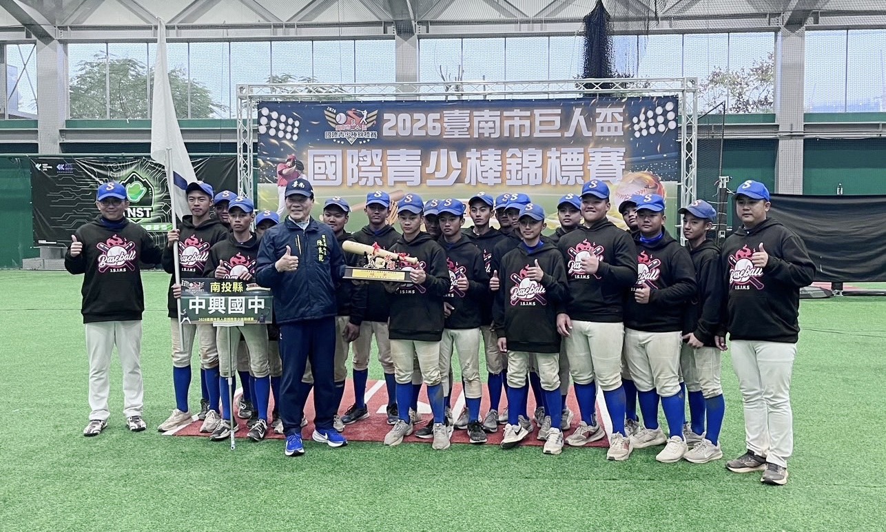 照片取自南投縣政府 【聚傳媒特約記者陳欣如報導】2026 臺南市巨人盃國際青少棒錦標賽於元旦期間在臺南登場,並於7 日圓滿落幕。南投縣中興國中在高強度對抗的賽事中歷經層層考驗後成功奪冠,站上巨人盃最高榮耀,寫下隊史重要里程碑。 一年一度舉行的臺南市巨人盃國際青少棒錦標賽,向來被視為國內青少棒具指標性的國際賽事。本屆比賽由臺南市地主 7 隊、日本關西選拔隊與東北選拔隊,以及全國各縣市勁旅共同參與,共 48 支隊伍角逐。賽制採預賽三隊一組、16 組循環賽,每組取前二名晉級 32 強,隨後進入單敗淘汰賽,對球隊的穩定度、臨場應變與抗壓能力皆是嚴峻考驗。 中興國中在前四強戰面對賽前保持不敗的日本東北選拔隊,中興國中在比賽中兩度落後,仍能維持比賽節奏與攻擊紀律。第四局兩出局後展開關鍵攻勢,連續擊出 8 支安打、單局攻下 7 分完成逆轉,最終以 4 分差勝出,搶下冠軍戰門票。 南投縣府表示,冠軍戰對手為國內勁旅臺中市中山國中。中興國中前兩局一度失掉 6 分,但球隊迅速修正,第三局追平比分,之後雙方攻守拉鋸。第七局下半,中興國中在兩出局情況下再度追平比數,將比賽帶入第八局突破僵局制。延長賽上半局,中興國中以關鍵守備成功守住失分,下半局在一出局、一三壘有人情況下擊出再見安打,正式封王。 中興國中校長鄭俊楠表示,巨人盃是國內青少棒實力的重要舞台,也是培育未來棒球人才、推動國際交流的關鍵賽事。中興國中棒球球隊在落後情況下展現高度抗壓性與韌性,能在關鍵時刻穩定執行戰術,最終於延長賽擊出再見安打登頂,不僅是選手努力的成果,也象徵中興國中棒球發展的重要里程碑。 教育處長王淑玲指出,藉由巨人盃大型賽事,以及高品質競賽環境與完整賽制,讓國內各方與國際年輕選手在實戰中交流成長,且經由日本隊伍來臺參賽,深化臺日棒球交流。她也強調,巨人盃每年邀請各界重要棒球專業團體共襄盛舉,已成為國內青少棒具指標性的賽事之一;南投縣政府長期深耕基層體育,持續強化棒球運動發展,為國內棒球培育穩定且具潛力的新生代戰力。