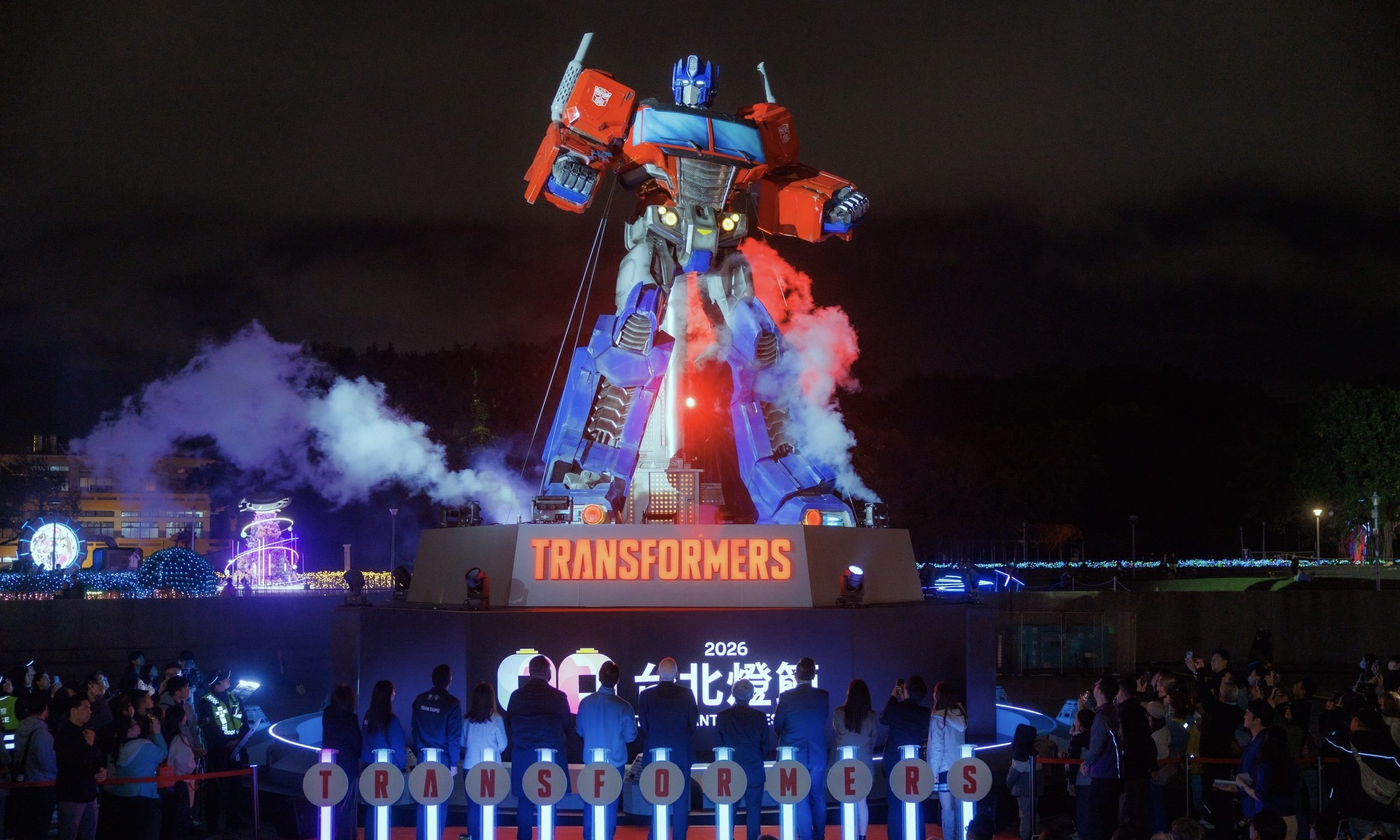 照片取自臺北市政府 【聚傳媒特約記者陳欣如報導】2026台北燈節以「雙展區、雙IP」人氣角色強強聯手席捲臺北,25日晚間花博展區由臺北市長蔣萬安點亮10公尺高的《變形金剛 TRANSFORMERS》- 柯博文主燈,透過燈光展演、煙霧特效及超過40支環繞特效燈光共演,並搭配變形金剛專屬音樂,展現變形金剛出場的磅礡氣勢。花博展區除了IP燈組,還有「臺北隊熊讚」的12行政區燈組、藝術家燈組及友好燈區,邀請民眾賞燈並安排all-in臺北遊。 蔣萬安市長致詞表示,台北燈節是每年許多國內外旅客指定參與的活動,今年市府團隊大膽創新,首創「雙展區、雙IP」,結合世界知名的變形金剛與泡泡瑪特,展現臺北多元、包容、開放的魅力。這次花博展區有三大亮點,十公尺高變形金剛搭配專屬音樂、首度參展的美國在台協會(AIT)等13個國家及城市組成的友好燈區,還有創意設計的藝術家燈區。此外,燈節期間適逢花季,建議大家安排一趟小旅行,賞花之餘走訪周邊宮廟參拜,到中山商圈、晴光夜市等品嚐在地美食,最後前往花博燈區賞燈。蔣萬安笑說,家中二寶、三寶也在討論要去哪個展區,歡迎大家利用連假期間,到花博公園與西門町兩個展區賞燈。 本次台北燈節花博展區透過花博公園的自然氛圍,打造沉浸式展演效果。除柯博文主燈外,展區內還設有分別以博派戰友大黃蜂、狂派首領密卡登及博派與狂派對戰為主題的燈組,並透過周邊光環境運用與設計,帶領著民眾一同進入變形金剛的世界。 觀傳局表示, 不只是變形金剛燈組,園區內還有許多必看燈組,像是今年首度推出的「臺北隊熊讚」12行政區燈組,超可愛的臺北市吉祥物熊讚這次化身各區代表,換上專屬造型,集結成一支「區區都讚」的城市隊伍,成為各行政區最萌代言人。 觀傳局指出,本次花博展區的友好交流燈區,共邀請13個國家、城市展出特色燈組,今年適逢美國建國250周年,美國在台協會(AIT)更首度參與展出燈飾,展現臺美友好情誼。今年的藝術家燈組也充滿許多巧思,如「奇幻動物園」,由藝術家創造一群可愛生物嘟嘟獸、吐兔馬、吼吼龍和珍奇怪,每一隻都有自己的角色故事,而民眾觸碰作品時,燈光會隨之變化,發出泡泡或煙霧,與民眾展開一場感官對話;「體操男爵」則是具有科技感的太空人空降花博公園,並仰望星空,象徵著巨大的旅行者剛結束一段跨越星際的旅程;「城市樓閣」以臺北市的城市夜景為創作理念;「SPACE TAIPEI」象徵著臺北向上爬升的動力;「花漾銀河」則藝術家透過花卉、光影與外星元素的融合,打造一座彷彿從星際降臨的生命體,以盛放的花束作為主體呈現一個超越現實、充滿未知生命形態環繞的奇幻場景。 除了到展區賞燈,花博展區周邊鄰近美術館、舞蝶共融遊戲場、臺北孔廟、大龍峒保安宮等景點,周邊還有中山商圈、晴光市場、至聖花博商圈、大龍夜市皆推出歡樂市集及購物優惠,搭乘捷運一站即抵達士林夜市,賞燈後再加碼安排逛商圈逛夜市吃美食,同時間也可到陽明山花季及士林官邸鬱金香展。 觀傳局貼心提醒燈節期間展區及周邊禁止吸菸,以提供民眾舒適的賞燈體驗,若民眾有吸菸需求請至指定吸菸區。2026台北燈節活動期間為2月25日至3月15日,花博展區每日亮燈時間為17時至22時,其中每周六(2月28日、3月7日及3月14日)將延長亮燈至24時。柯博文主燈展演時間為18時至22時(2月28日、3月7日及3月14日將延長展演至24時),每30分鐘展演1次。